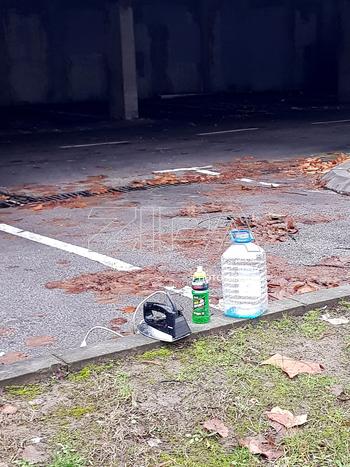 Banja Luka, 7. decembar 2021 - Neko nepoznat je kod garaže u blizini Sportske dvorane "Borik" u Banja Luci ostavio ova tri predmeta koji, očigledno potiču iz nekog ptljažnika. Pošto to kao performans nije najavljeno ostaje nam da mislim da je to nemar ili bezobrazluk! (ZIPAPHOTO/Miloš Šolaja)